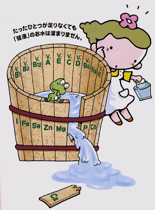 人間の身体は皆さんが毎日食べている食事によって造られます。人が生きていくためには46種類以上の必須栄養素が必要とされています。一つでも欠けると他の栄養素も吸収されなくなってしまいます。たとえば、カルシウム不足だからと言って毎日牛乳ばかり飲んでいても他の栄養素が足りなくてはカルシウムは身体に吸収されません。